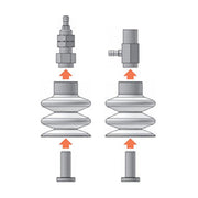 採用波紋管型機構,可對應各種高度落差、角度的附接頭固定式零件吸盤。