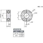| 型式 | 材質/表面處理 | 內徑 φB | 寬 L | 外徑 φD | 側孔-φS | 側孔-P.C.D. | W | X | Y | 緊固螺栓 M | 參考出貨日 |