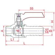 一次側為錐度(PT)外螺紋,二次側為軟管連接之配管用閥。