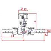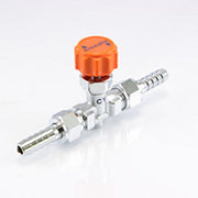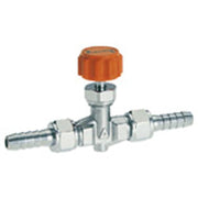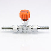 小型針閥,一次側、二次側用於連接軟管的筍節部分為套接型。